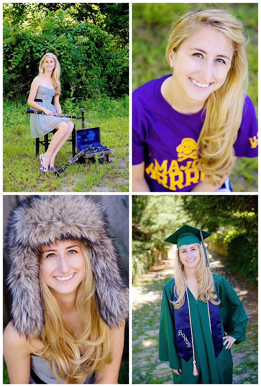 I love when clients are up for exploring locations and that’s exactly what we did for this session for Miss {S}! Despite the interesting characters we met along the way + a stray cat that freaked us out a little, we found some great spots downtown! I also love that {S} brought items that are special to her including musical instruments, a special dress, a super fun hat from a recent trip to Paris, and a t-shirt from the college she will attend. Here’s a little peek at our morning…